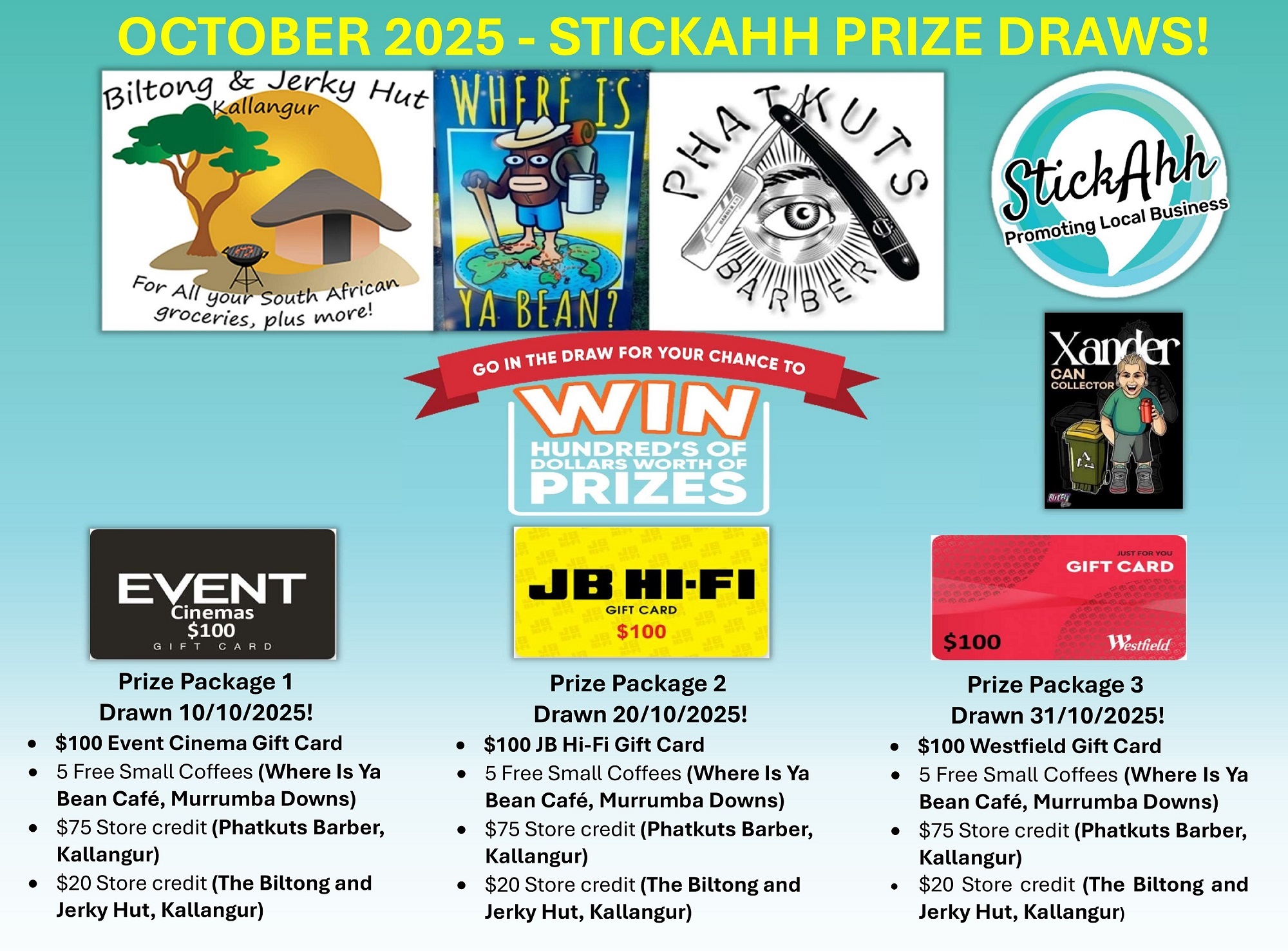 How To Enter Make a purchase from the local, independent businesses for the month of October 2025 scan the StickAhh QR code on your StickAhh label, enter your details, remain subscribed and go into the monthly prize draw. Good luck, and thank you for supporting small business.